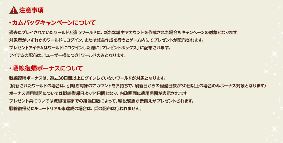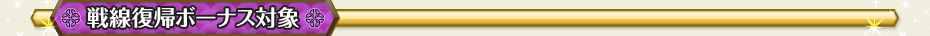 戦線復帰 カムバックキャンペーン!